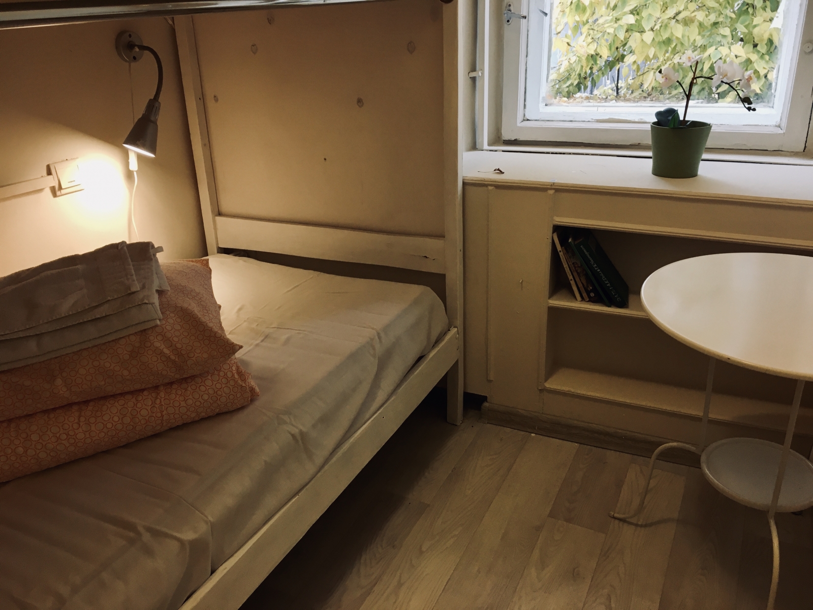 Комплектация номера: 3 двухъярусные кровати, оснащенные шторками, прикроватным светом и розеткой. Место хранения для багажа под кроватью, вешалка для одежды с плечиками, персональные запирающиеся шкафчики, журнальный столик, стулья. 3 cанузла и 2 душа на территории хостела. Бесплатно предоставляются полотенца и застилается постельное белье. На территории хостела действует мощный WIFI. Есть общая зона отдыха и кухня, оборудованная всей необходимой посудой и техникой. В наличии два холодильника, стиральная машина, принадлежности для глажки, фен, комната хранения для крупногабаритного багажа.