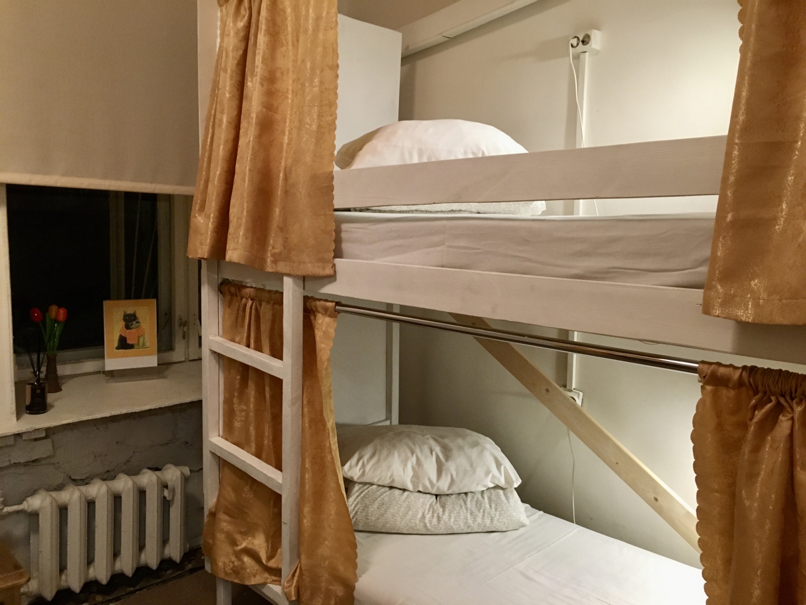 Номер категории «Общий 6-местный номер» — Комплектация номера: 3 двухъярусные кровати, оснащенные шторками, прикроватным светом и розеткой. Место хранения для багажа под кроватью, вешалка для одежды с плечиками, персональные запирающиеся шкафчики, журнальный столик, стулья. 3 cанузла и 2 душа на территории хостела. Бесплатно предоставляются полотенца и застилается постельное белье. На территории хостела действует мощный WIFI. Есть общая зона отдыха и кухня, оборудованная всей необходимой посудой и техникой. В наличии два холодильника, стиральная машина, принадлежности для глажки, фен, комната хранения для крупногабаритного багажа.